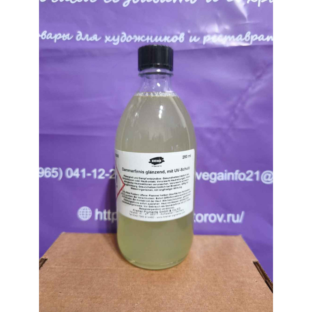 Даммарный глянцевый лак Кремер (Kremer),устойчивый к УФ-излучению, 250 мл